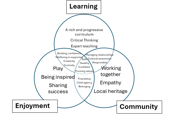 - Having the community at our core with pupil agency, joint activities and village events a valued part of school life