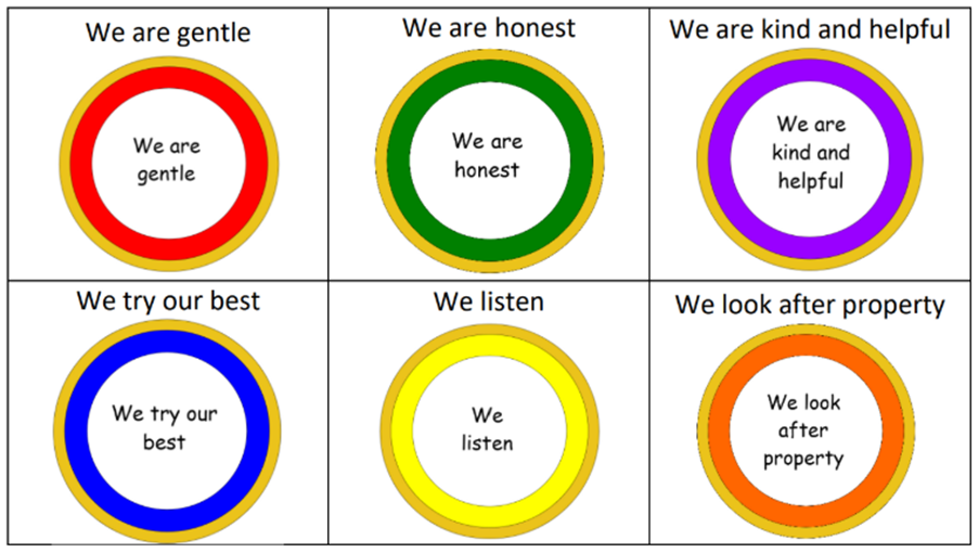 The school ensures that our golden rules reflect and are consistent with the messages taught across the curriculum, are consistently applied across the school and, where sanctions are exercised, they are in line with the school’s Behaviour Policy and are taken seriously. Good behaviour at school is acknowledged and rewarded at the discretion of all staff, who will judge appropriately.